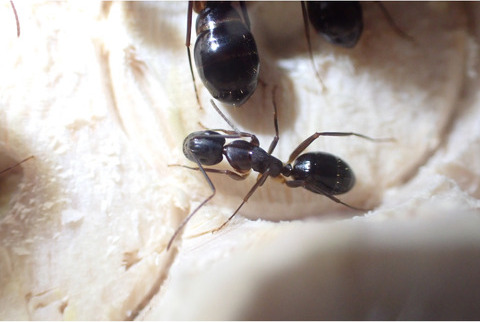 コツノアリの有翅女王の画像です。 冬前に巣内で羽化するようで、5月ごろの結婚飛行までコツノアリの巣で見ることができます。