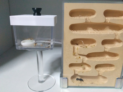 女王役が出てくるアリとしては、トゲオオハリアリ、インドクワガタアリなど、女王役がいて、女王役とワーカーに明らかな形態の違いがないようなアリです。