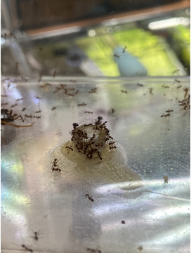 アリは、社会性昆虫で多くの働きアリが女王アリのもと協力しています。アリ同士のコミュニケーションや女王アリの場所や、餌をあげた時の狩りの様子や餌の受け渡しなど多くのことが行われておりとても面白く楽しみながら時間を過ごすことができます。