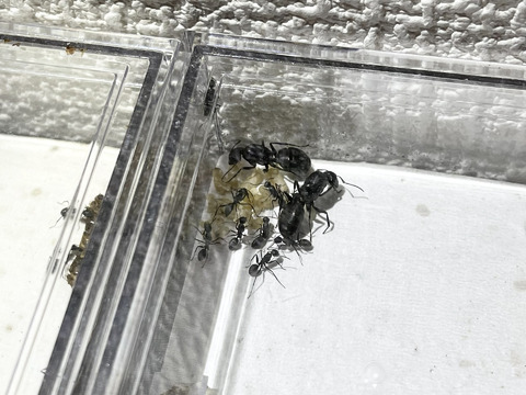 ウメマツオオアリは顎の力が強いアリなので、石膏を掘ってしまうのは仕方がありません。しかし試験官巣、木製の巣、3Dプリンター巣、アクリル製の巣は掘られる可能性が少ないので、おすすめです。
