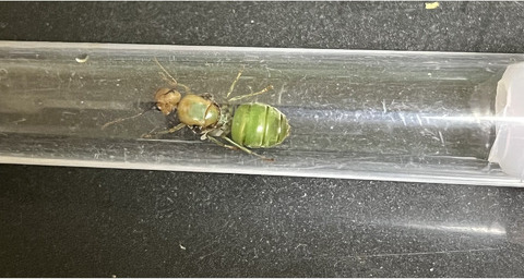 死んでしまいましたがついに中型と大型の境のワーカー(兵隊アリ)が生まれました!!