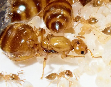 見た感じ、アメイロケアリやヒゲナガアメイロケアリの女王より体が短い気がします。