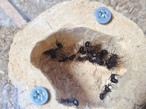 とりわけ窪みが好きなようでそこでくつろぐ女王や幼虫を見かけました。