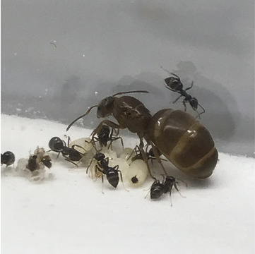 近所の森で採集したワーカー数約70匹のQ3コロニーです。