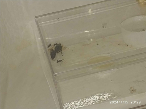 手持ちのクロオオアリコロニーから蛹を2つ投入しましたが1つ目の羽化した成虫は死んでしまいました。