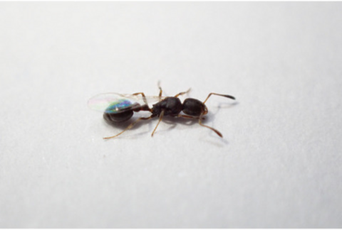 最近、飼育しているヒメムネボソアリにて、雌雄モザイクが生まれました。