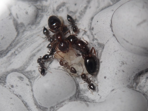 (写真は日光に当てて翅を落としたアメイロケアリ様の新女王)