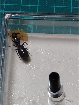 シリアゲアリ属の脱翅雌14匹の内卵や幼虫があるのはこの1コロニーだけなので大切に育てたいです。