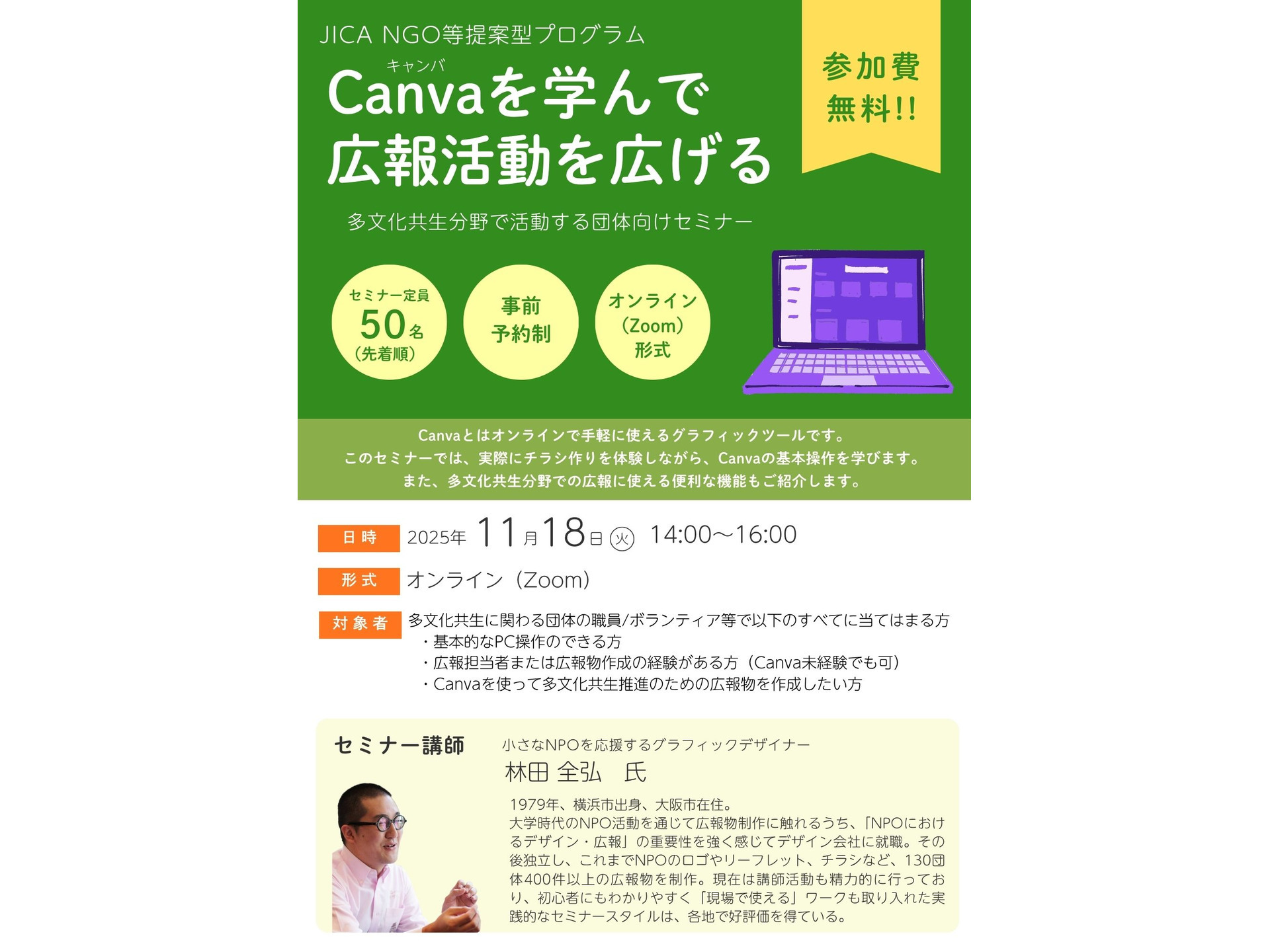 【11/18】 Canvaを学んで広報活動を広げる~多文化共生分野で活動する団体向けセミナー~