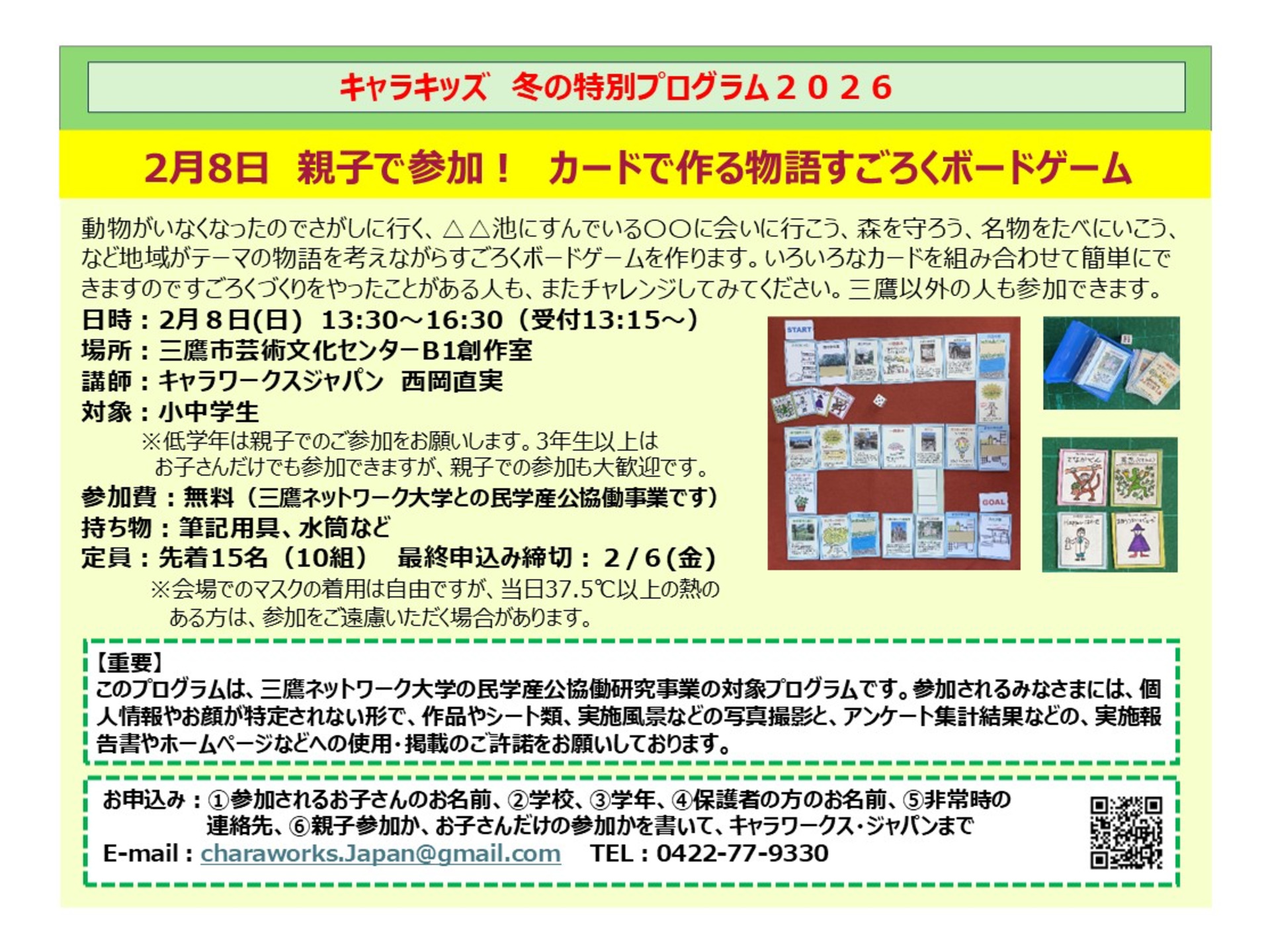 物語テーマのサマープログラム:8/17(日)(親子で)みたかを旅するキャラクターのすごろくボードゲームづくり物語テーマのサマープログラム(親子で)三鷹を旅するキャラ...