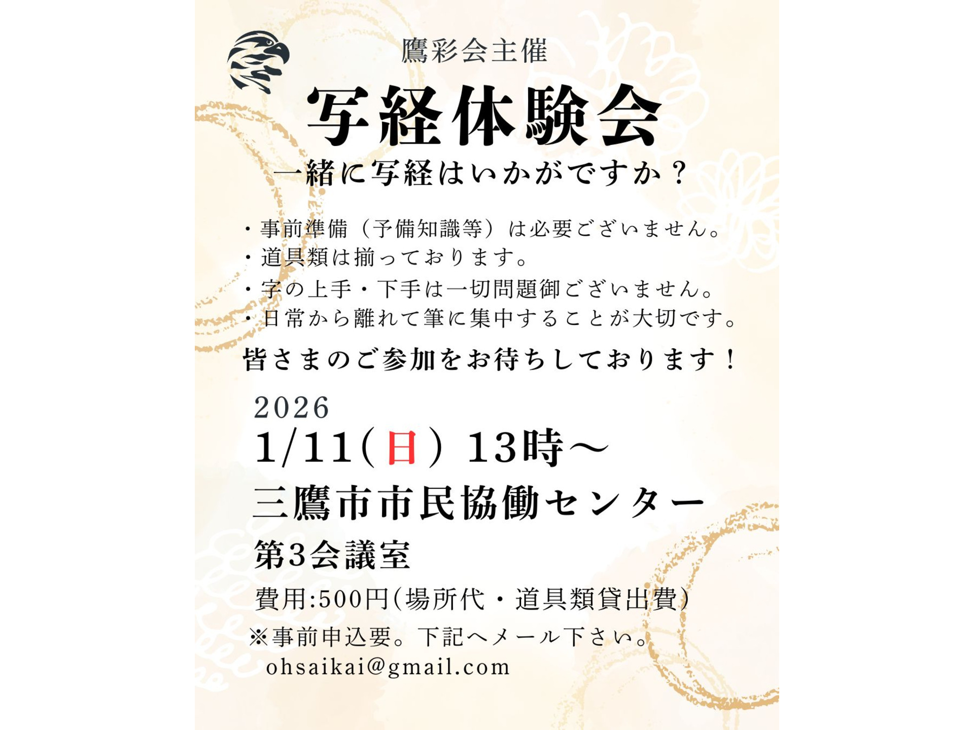 【残り1席】1/11(日)第七回写経体験会:鷹彩会(おうさいかい)
