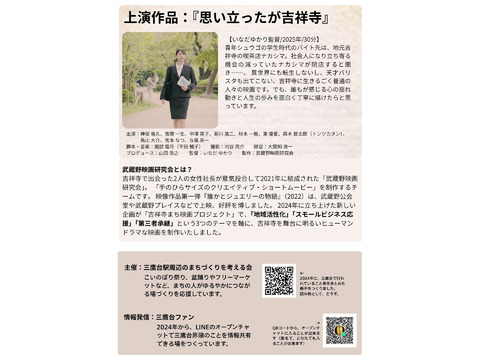 『思い立ったが吉祥寺』の上映会を、三鷹台で開催します。