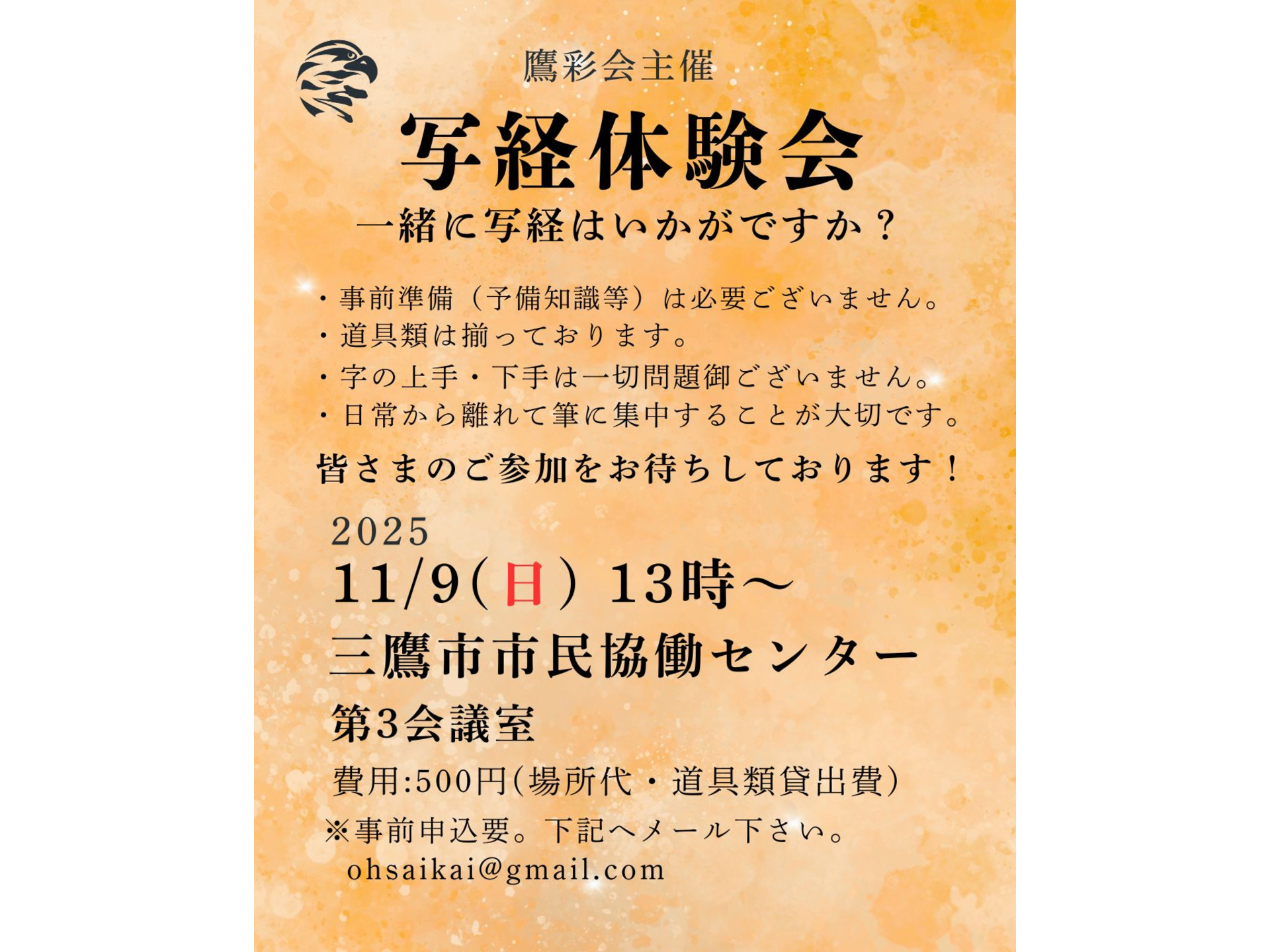11/9(日)第五回写経体験会:鷹彩会(おうさいかい)