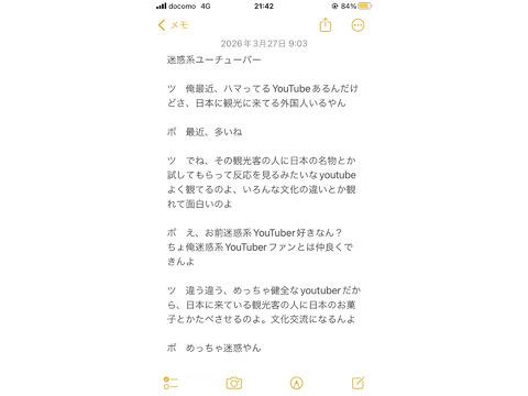 好みのお笑いが一緒の方が良いと思い今考えているネタを添付させていただきました。この手のネタを面白がってくれる方だとありがたいです。ツッコミの箇所はちょいちょい空いてますし、埋まってるとこも結構適当に埋めてます。基本的にネタは一緒に話し合いながら作っていければと考えてます。